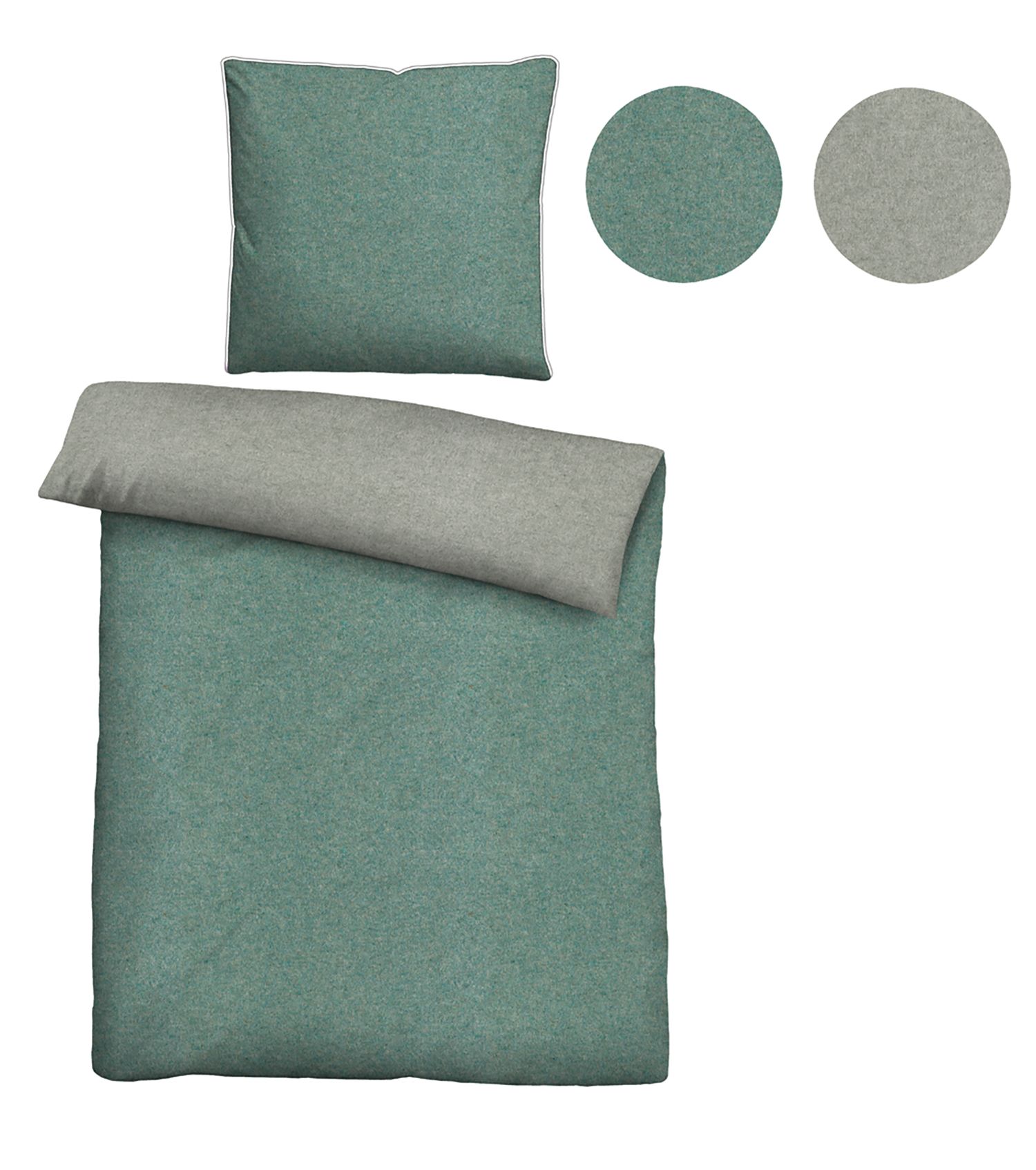 Biberna Melange- Flanell Bettwäsche 'Uni' 135 x 200 cm Fichte - Grün