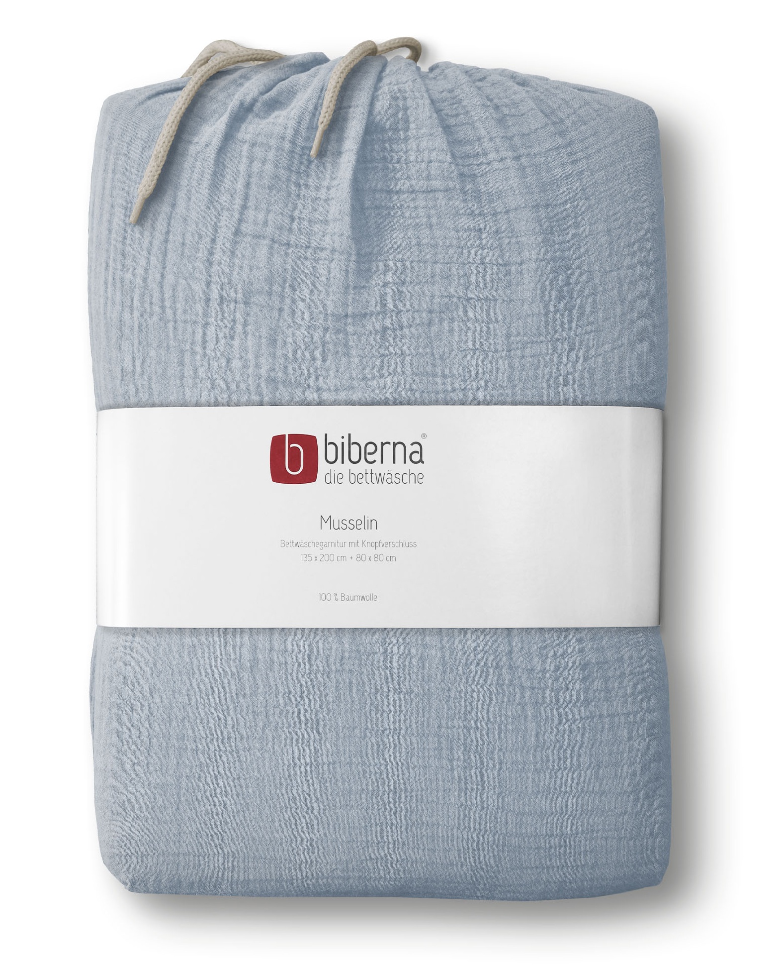 Biberna Musselin Bettwäsche 'Uni' 135 x 200 cm Taubenblau