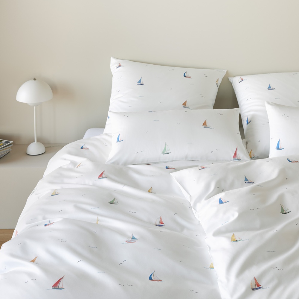 elegante Mako-Satin Bettwäsche 'Sail Away' 135 x 200 cm Weiß