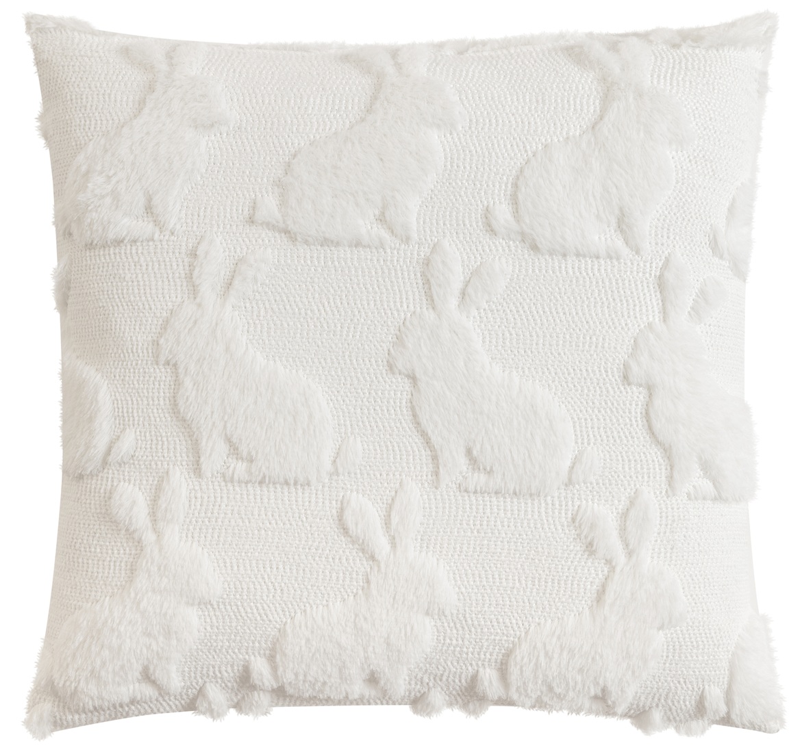 Die weich erhabenen Hasenformen verleihen diesem Kissen eine charmante, fast schon spielerische Textur, die sofort ins Auge fällt. Das Ton‑in‑Ton‑Design wirkt ruhig und hochwertig, während die feinen Konturen der Häschen dem Kissen eine liebevolle, saisonale Note geben – perfekt für Frühling, Ostern oder einfach für ein gemütliches, natürliches Wohngefühl.